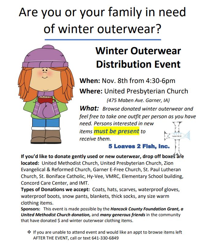This winter will – like all Iowa winters – be cold. This winter clothing/outerwear drive will be a blessing to local kids and families to get through the bitter temperatures. Zion is partnering with 5 Loaves for their outerwear drive.