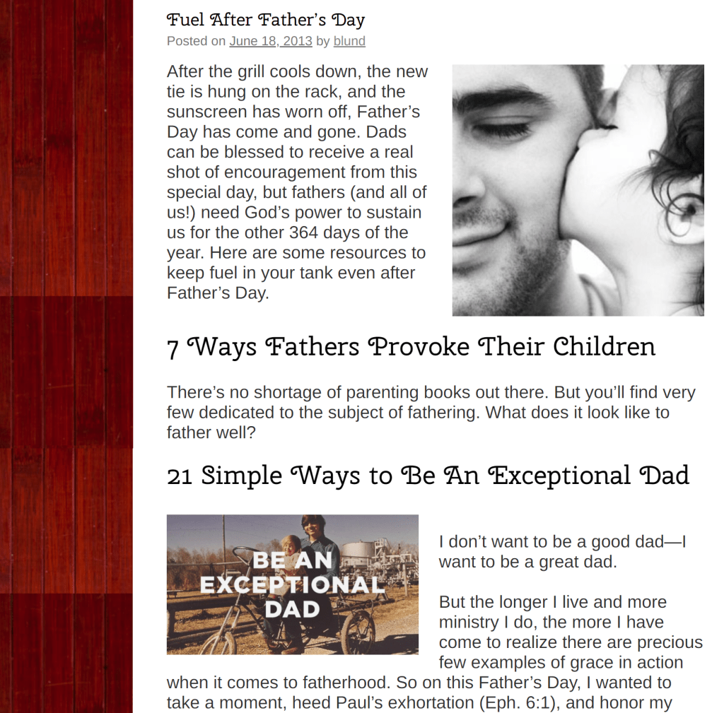 Now that the grill has been put away, the new tie that Dad unwrapped is hung up, and some of our Father’s Day festivities has ended, now is a great time to really challenge ourselves in what it means to be a godly father! Read all the helps for Fuel After Father’s Day here.