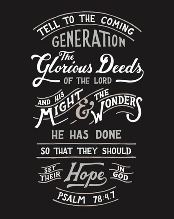First, verse 5 tells us that God established a testimony. This testimony is the sum of God’s Word to his covenant people. It includes God’s glorious deeds, His might, and the wonders that He has done and His perfect law and commandments given to His people for their good.